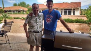 We needed a new grill here in Arizona, and when my dad and I went out to get one, it so happened that the local sales guy for Traeger was at the store. I talked to him a bit, thinking I would just move along to the normal propane jobbies. But he get further into his pitch and I started thinking about it, and I said “you know what, Ron, he’s right. Cooking on wood is just better.” So I bought it. It was pricey, but what the hell. The kicker, of course, is that my dad got one, too. The scream of joy from the salesman was audible for three counties.