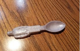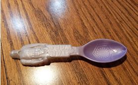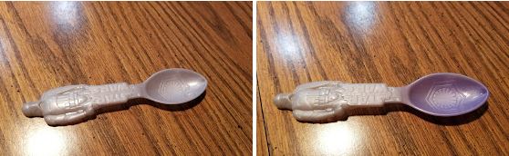It’s a Star Wars spoon: a little piece of merchandising, right there on my breakfast counter. Even better, you can imagine my delight to learn that this is a color-changing spoon! (* enlarged to show detail*)