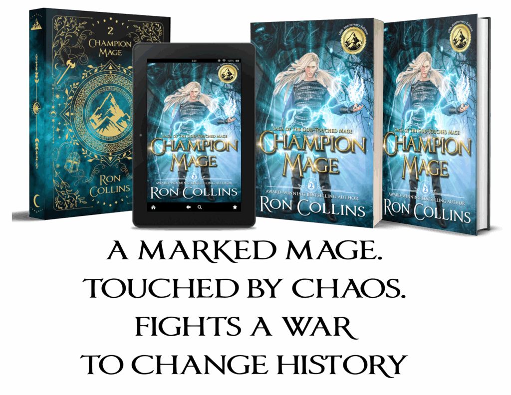 I’m going to ramble a little about Champion Mage in a sec, but if you’ve been around here for just the past two weeks, even, you know that I’m all hopped up about the upcoming Kickstarter release of the 10th anniversary edition of my fantasy series, Saga of the God-Touched Mage.