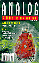 On Writing "Stealing the Sun" "They're Stealing the Sun," Carla Montgomery said when I explained a little piece of my idea. "That's the title," I replied. I rapidly scribbled those words down. Titles are the hardest thing about most of the stories I write. Maybe that says something about me. I was up in my hotel room at the Writers of the Future workshop. Stafano Donati (my roomie) and Carla were talking over their stories. Carla noticed me gazing out the window, I guess, and asked me about the story. And that's how we got to the beginning of this essay. One of the exercises you do at the WotF gig is a gesalt thing where you are given an object and asked to come up with ideas for stories. I had been given a pen and pencil set that belonged to Amy Casil. The leather case immediately reminded me of launch tubes, and I wanted to capture something about some of the people I had worked with in my days in the civil service, so I chose a Lieutenant Commander as the main character. In the hotel room was one of the biggest oranges I had ever seen, with a rind pock-marked and with dimples. It became the sun, and next thing you know I had the premise of my story. Enter Carla's comment. A quick spin through the writers' group tightened a few places. Stan bought it and published it in a matter of about five months. Oh, if all of the publishing process worked so smoothly!